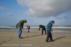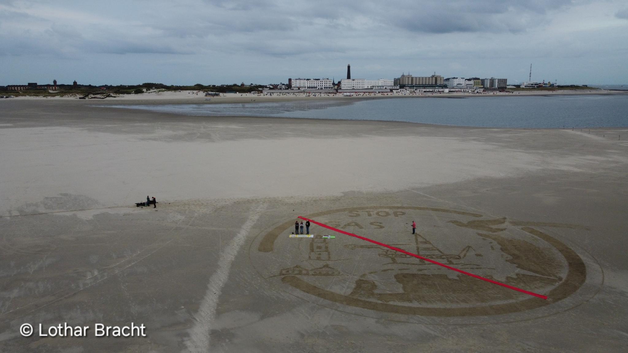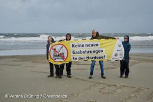 Seit 2018 beschäftigen wir uns mit den Gasbohrungen vor Borkum und Schiermonnikoog. Und der Protest wird zunehmend größer. Am 15. September 2025 war wieder Zeit für eine Aktion auf Borkum: Ein Team von Greenpeace Deutschland und die europäische Kampagne Fossil-Free Future segelt mit der Witness nach Borkum und mit an Bord sind der Schauspieler Philip Froissant und der Content Creator Fabian Grischkat und gemeinsam mit dem Künstler Lothar Bracht bringen wir unseren Protest auf den Strand von Borkum.